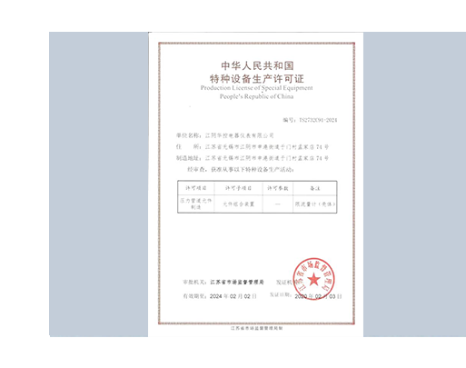 江陰華控電器儀表有限公司主要從事節流裝置,標準孔板,文丘里管,標準噴嘴的生產銷售。公司擁有近20多年的生產制造經驗,并承接工程配套任務,同時還遠銷亞、非等。按ISO9001準體系運行,實行質量管理。公司取得了特種設備生產許可證,產品符合中華人民共和國標準GB/T2624T以及國際標準IS0516的規定,符合市監特涵〖2018〗515號文件和壓力管道元件TSG D7006-2020要求。